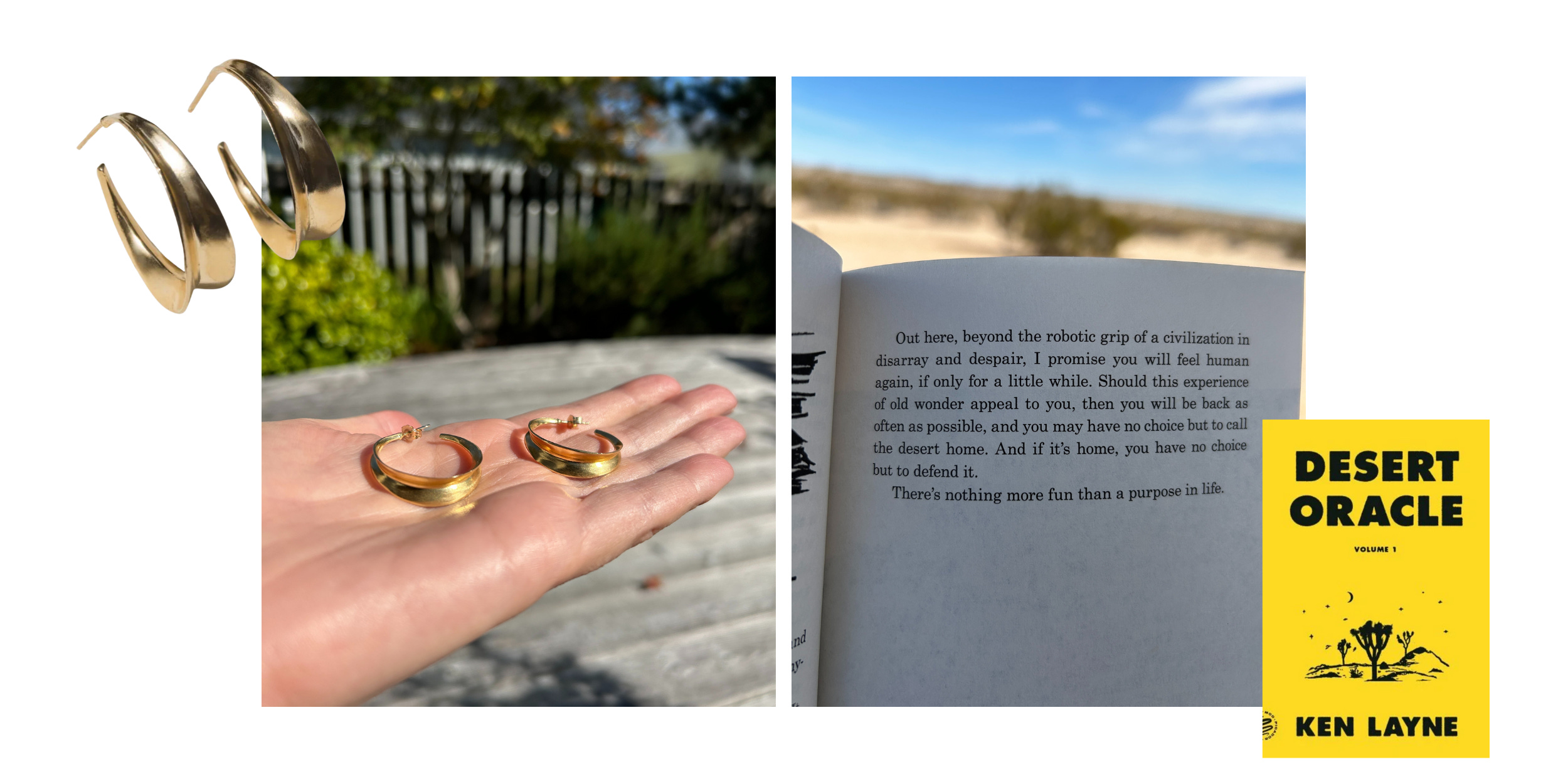 Gold hoop earrings from Short Wave in Astoria. They were a bit of an impulse buy, but I’ve been wearing them every day and I love them.